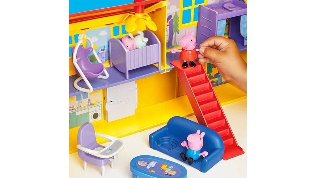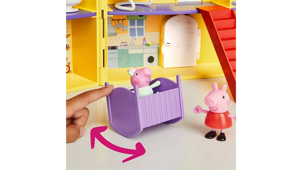 Otroci lahko ustvarijo in ponovno doživijo svoje najljubše zgodbe o Pujsi Pepi z vso družino, vključno z najnovejšo članico, Evie. Ta 16-delna hiša je videti natanko tako, kot v seriji, in vsebuje vse pomembne prostore: kopalnico, dnevno sobo, kuhinjo z odpiranjem hladilnika ter garažo z dvižnimi vrati. Set vsebuje tudi figure, tako da lahko otroci še bolj realistično odigrajo prizore iz risanke. Ta igrača nem le razvija domišljijo, ampak tudi popestri skupno družinsko preživljanje časa, medtem ko najmlajši odkrivajo svet Peppe in ustvarjajo lastne zgodbe.