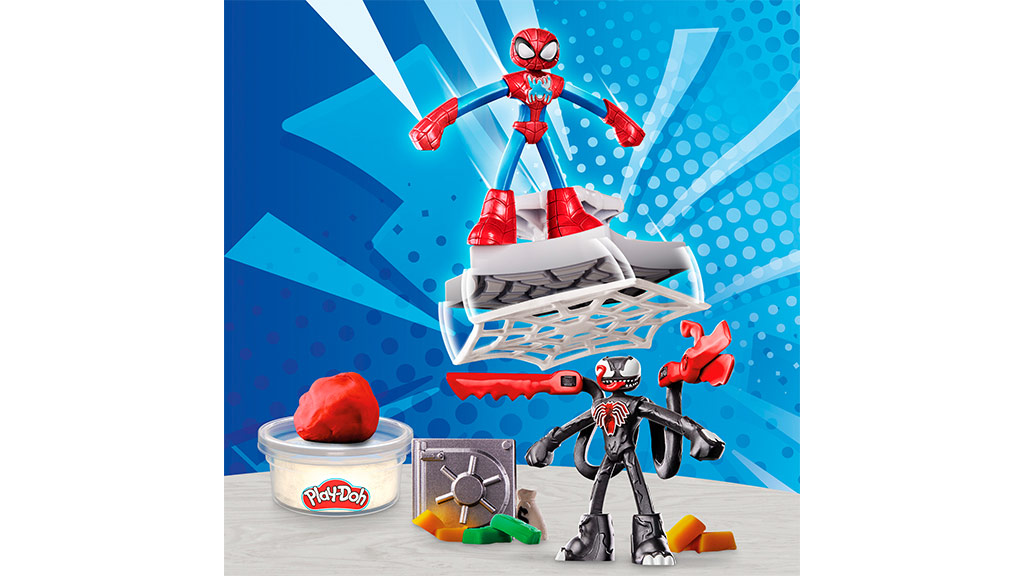 Spider-Man se spopade z Venomom v tem kompletu, ki vsebuje figure Spider-Mana in Venoma, sef, poln zakladov, ki jih lahko Venom ukrade, valj, žig, ki izdeluje ogromne Play-Doh mreže, Venomove Play-Doh škarje in štiri lončke Play-Doh-a.
