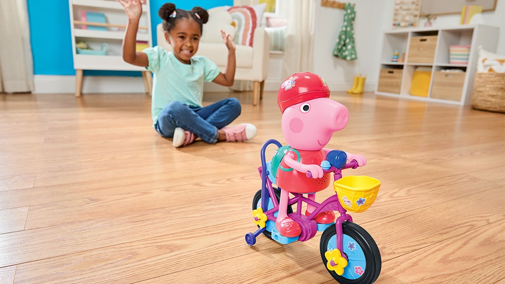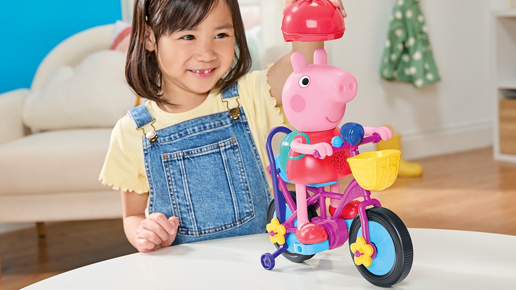 Peppa malac Ready, Pedal, Go Peppa igrača pomaga otrokom, da skupaj usmerjajo Peppo, medtem ko se uči voziti kolo. Ta igrača ni le zabavna, ampak razvija tudi motorično koordinacijo in samozavest, medtem ko se najmlajši igrajo s svojo najljubšo risano junakinjo. Izdelek je izdelal Hasbro, ki je po vsem svetu znan po svojih kakovostnih igračah.