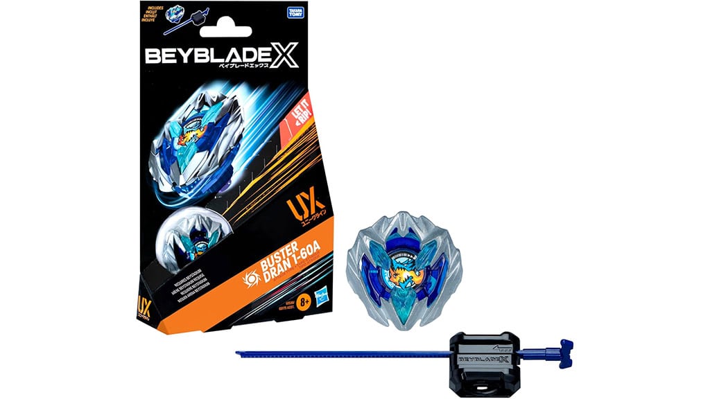 Beyblade X Busgter Dran 1-60A UX Starter Pack Set vsebuje desno vrteči se napadalni vrtavko in zaganjalnik, da se lahko mali mojstri vrtavk takoj potopijo v vznemirjenje bitke. Ta komplet je idealna izbira za tiste, ki želijo preizkusiti svet Beyblade in uživati v dinamičnih spopadih. Igra razvija strateško razmišljanje in ročne spretnosti, hkrati pa ponuja zabavno izkušnjo za otroke.Nova kolekcija Beyblade X vsebuje vse, kar otroci potrebujejo za resnično dinamično zabavo, od boosterjev in začetnih kompletov do dvojnih zgornjih paketov, ki zagotavljajo dvojno akcijo. Družine lahko nadgradijo svojo Beyblade izkušnjo s kompleti UX Starter Pack, ki vključujejo izstreljevalnik in vrtavke z epskimi funkcijami, ki pomagajo otrokom, starim 8 let in več, obvladovati Beystadium.
