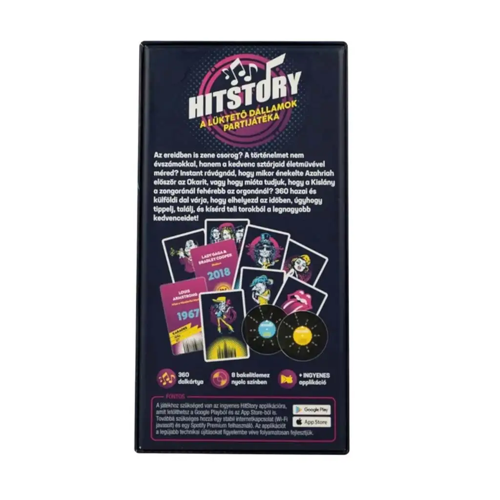 Popestri zabavo z družabno igro HitStory, kjer je dobra volja zagotovljena in uspešnice glasno odmevajo! Ta posebna zabavna igra je hkrati glasbeno potovanje skozi čas in bliskovito tekmovanje v ugibanju, v katerem morate največje domače in tuje hite razvrstiti v kronološkem vrstnem redu. Veš, kdaj je izšel največji hit od Fluorja ali kdaj je zaslovela Adele? Če ne, boš kmalu izvedel – vmes pa se boste lahko nasmejali zabavnim ugibanjem!