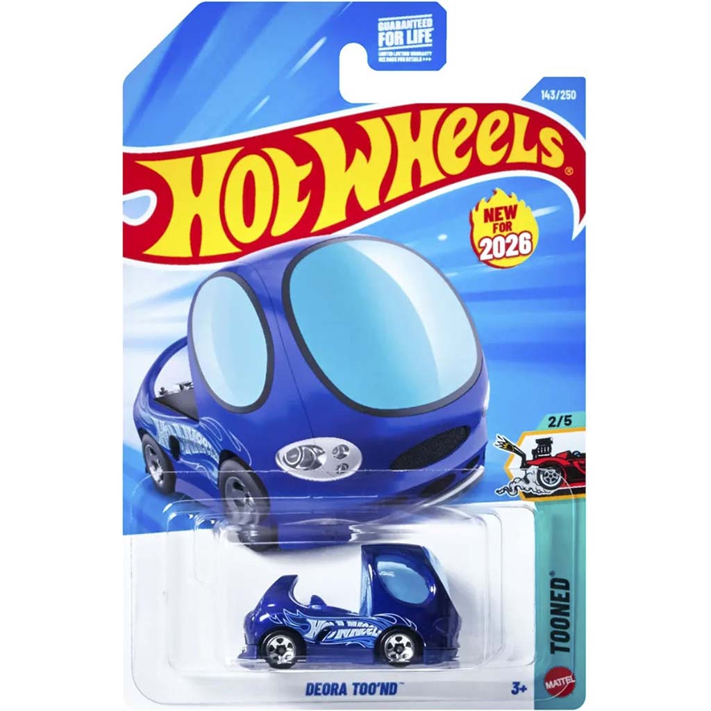 Hot Wheels Deora Too’ND mali avtomobilček je res vesel in poseben kos, ki bo zagotovo priklical nasmeh na obraz tvojega otroka. Ta model v merilu 1:64 prinaša klasično obliko Deora v igrivem, risankastem slogu, ki ga resnično naredijo edinstvene zaobljene oblike in ogromna, mehurčkasta okna. Živo modra barva in razburljiva grafika dodatno poudarjata njegov videz.