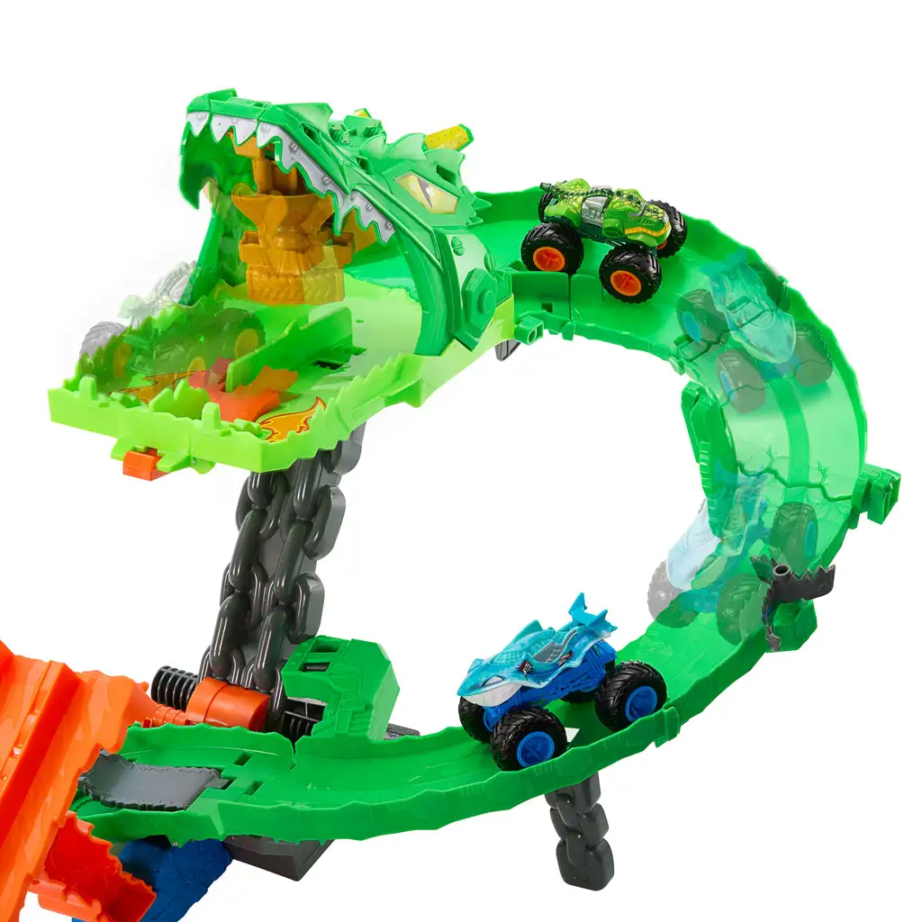 V kompletu sta dva ekskluzivna pošastna tovornjaka v merilu 1/64: Great Bite in Rageasaur. Avtomobili tekmujejo na stezi, medtem ko razcep z žago naključno določa, katero vozilo bo imelo prednost, in katero bo odletelo s steze. Cilj je, da eden od avtomobilov doseže ciljno črto, izstreli zmaja, nato pa z dodatnim zagonom prileti naravnost v pošastna usta in osvoji trofejo.