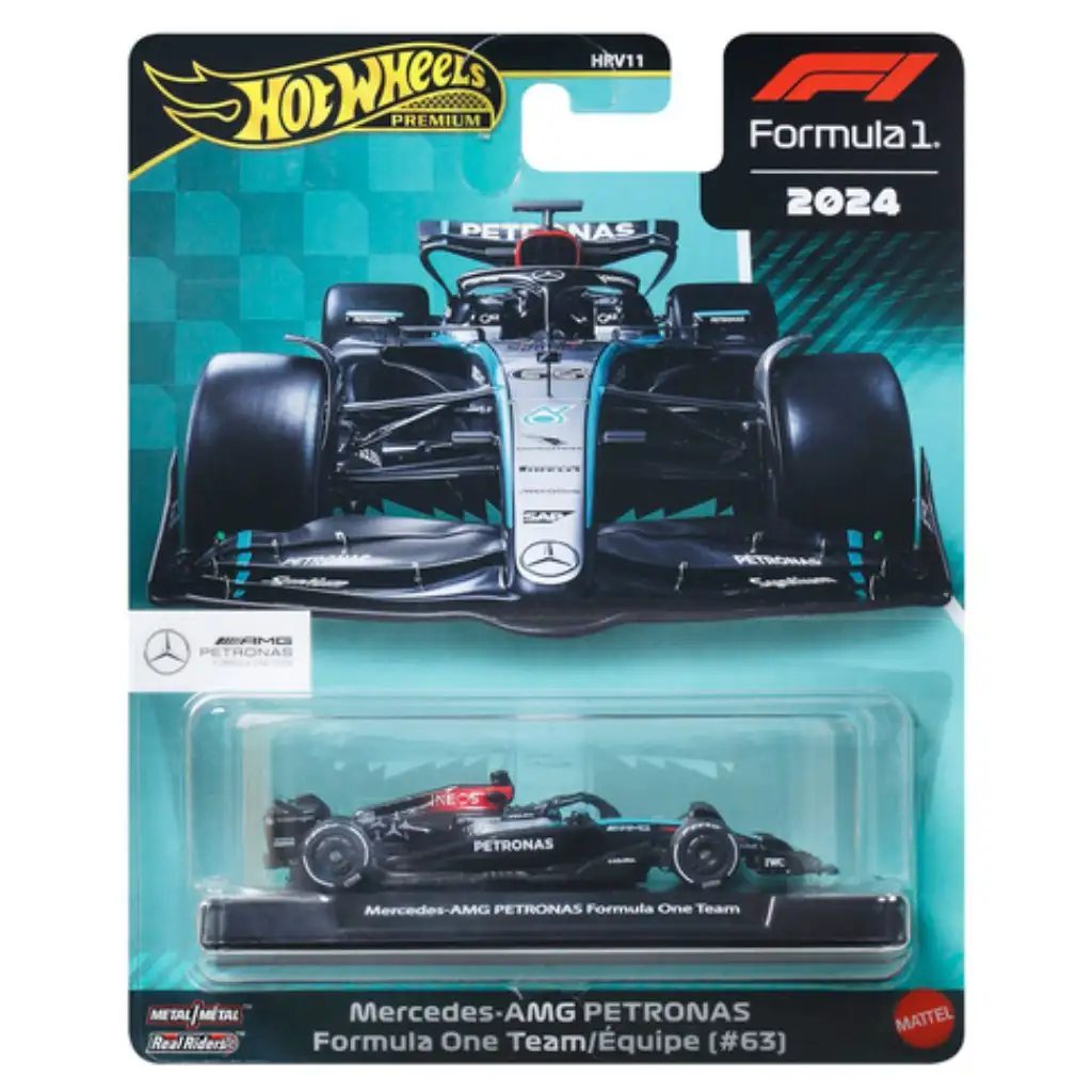Kot del serije Hot Wheels Premium prihaja model Mercedes-AMG PETRONAS Formula 1 Team No. 63, ki prikazuje enega najbolj prepoznavnih dirkalnikov iz sezone Formula 1 2024. Značilna črno-turkizna barvna shema moštva, podrobna grafika sponzorjev in natančno izdelani aerodinamični elementi zvesto odražajo ikonični videz Mercedesovih dirkalnikov Formule 1. Dinamične proporcije modela in precizna izdelava zagotavljajo pravo premium izkušnjo za vse ljubitelje motošporta.