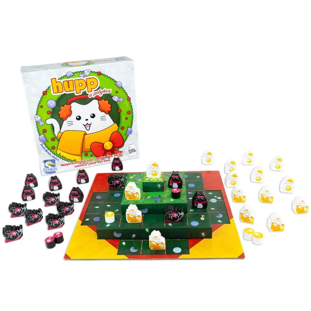 Zavajajoče prikupen, presenetljivo prebrisan taktični dvoboj za dva igralca – to je Hupp, puhasti, kjer se božično drevo napolni ne le z okraski, ampak tudi s prebrisanimi mucami! Na prvi pogled je igra očarljiva – le kdo ne bi želel okrog drevesa prestavljati mačjih figuric v prazničnih puloverjih in z darilom v šapicah? A naj vas kosmat videz ne zavede: ta igra je prava miselna preizkušnja, kjer šteje vsaka poteza!