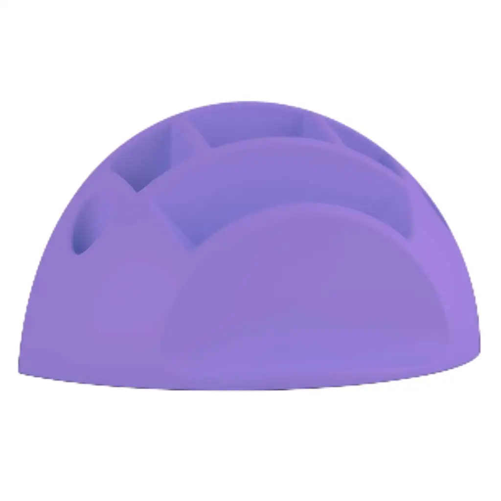 Pametno držalo za pisala – v pastelno vijolični barvi ni le praktična, temveč tudi izjemno stilska rešitev, če želite organizirati otroške pisalne potrebščine ali popestriti pisalno mizo z lepim, veseljem dodatkom. Polkrožna oblika je moderna in prostorsko varčna, poleg tega pa ponuja več različnih velikosti predalov, tako da lahko enostavno organizirate pisala, svinčnike, radirke, lepila, škarje ali celo manjše beležke. Držalo je izdelano iz trpežne plastike, ki je odporna na vsakodnevno uporabo, enostavno za čiščenje, zato je dolgoročno zanesljiv partner pri učenju. Pastelno vijolična barva pa oddaja mehko, harmonično vzdušje – popolnoma se ujema z drugimi pastelnimi odtenki in se lepo prilega tako dekliškemu kot nevtralnemu okolju. Pomaga otrokom, da lažje vzdržujejo red v svojem učnem kotičku, medtem ko bo užitek pogledati na njihovo mizo.