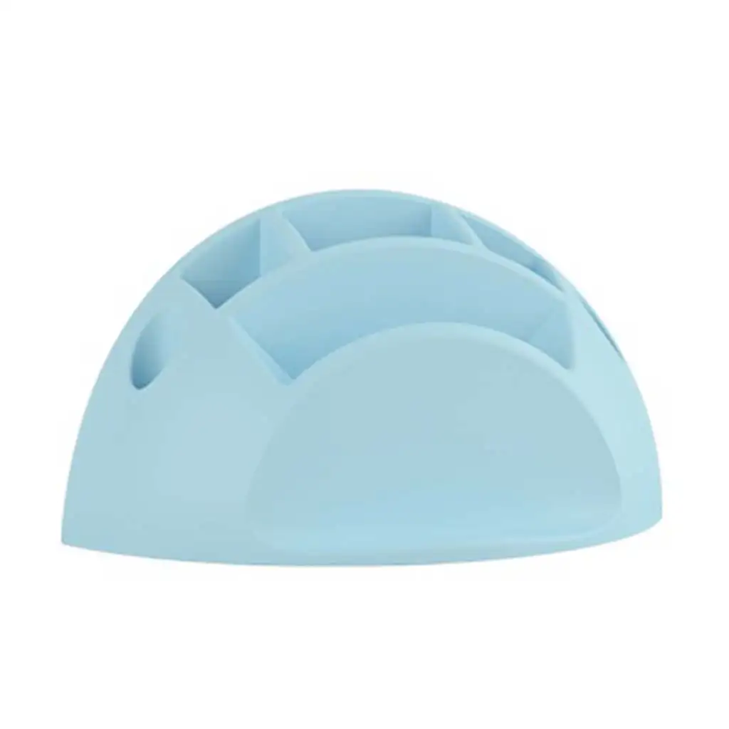 Pametno držalo za pisala – v pastelno modri barvi ni le praktičen, temveč tudi stilski dodatek za katerokoli pisalno mizo, bodisi doma ali v šoli. Polkrožno oblikovano, moderno zasnovano držalo z več predelki pomaga organizirano shranjevati svinčnike, pisala, radirke, ravnila ali celo manjše škarje. Različne globine in oblike predelkov omogočajo, da je vsak pisalni pripomoček enostavno dosegljiv, hkrati pa prihranite prostor na mizi.