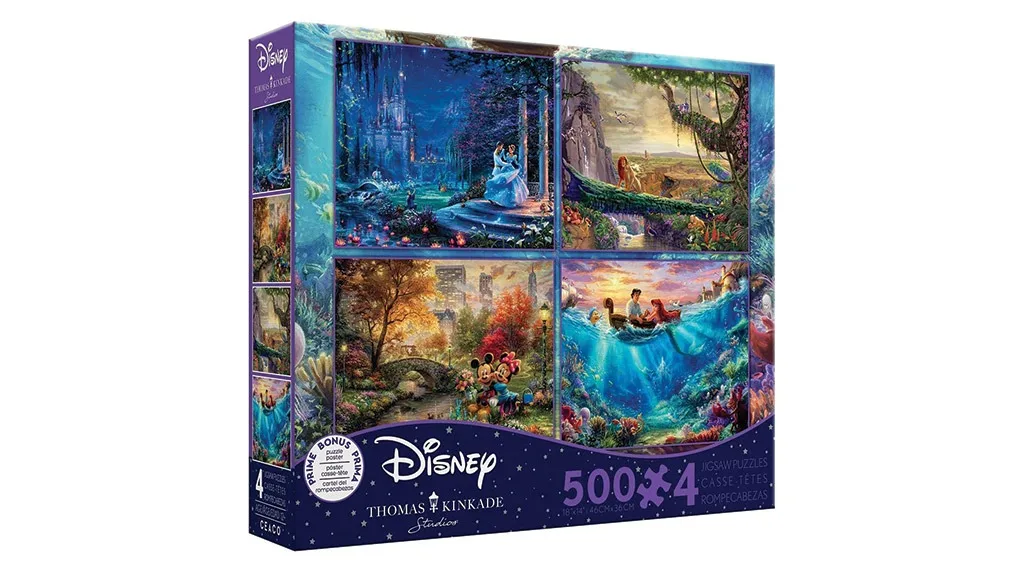 Kaj je lahko boljše od ene uganke? Štiri v enem! Ta komplet vsebuje štiri, 500-delne Disney uganke, ki so navdihnjene po Pepelki, Levjem kralju, Miki in Mini ter Mali morski deklici.