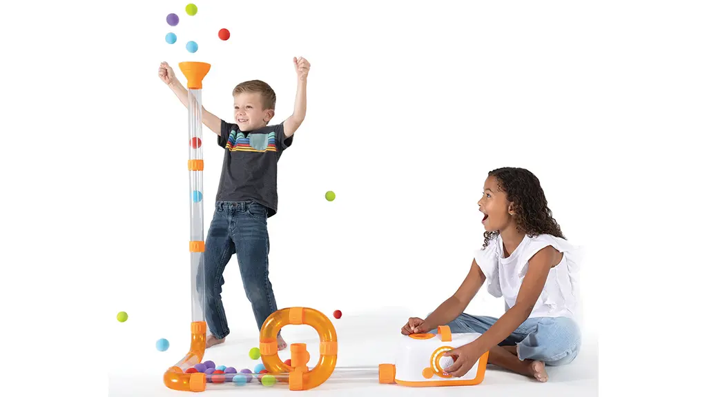 Kdo bi si mislil, da je lahko fizika tako zabavna?Air Toobz je komplet cevi, žog in dodatkov od Fat Brain Toys, ki je namenjen spodbujanju otroške domišljije in kreativnosti. Otroci, stari 3 leta in več, lahko cevi poljubno sestavljajo in povezujejo, nato pa opazujejo, kaj se zgodi z žogami, ki potujejo skozi cevi, ko vklopijo zračni tok.Cevi so močne, vzdržljive in enostavno sestavljive, tako da lahko otroci preprosto zdrsnejo na svoje mesto in zgradijo ter ustvarijo svoje načrte. Morda bodo mlajši imeli težave s sestavljanjem kosov, vendar se lahko starš ali skrbnik enostavno vključi v zabavo!
