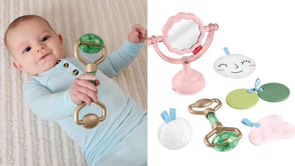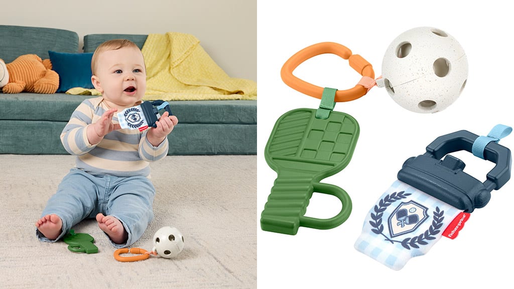 Dojenčki lahko razvijajo svojo gibalno koordinacijo s kompletoma Tiny Tailgater in Let’s Play Pickleball, ki oba vsebujeta senzorične in za zobke varne športne pripomočke. Šestdelni DJ darilni set ponuja otrokom prijazne DJ dodatke, kot so prenosnik z ogledalom, piskajoči mikrofon, ropotulja z disko kroglo in žvečljiv disk z ropotuljastim ovitkom. Mali posnemovalni taborniški navdušenci se lahko zabavajo z ribolovom s setoma Camp & Crinkle ali Reel Fun Fishing, medtem ko se mali glamperji lahko pripravljajo kot pravi odrasli: set vsebuje ropotuljico za masažo obraza, kliker kumarične rezine, žvečljiv gua sha, dvostransko ropotuljasto obrazno masko in še veliko drugih zanimivih dodatkov. Te igrače ne le zabavajo najmlajše, ampak tudi spodbujajo njihov senzorični razvoj, podpirajo razvoj finomotoričnih spretnosti in so varne tudi v obdobju izraščanja zob. Raznoliki seti omogočajo igro vlog, spodbujajo ustvarjalnost in starši se lahko zlahka vključijo v skupno igro, s čimer se krepi tudi družinska vez.