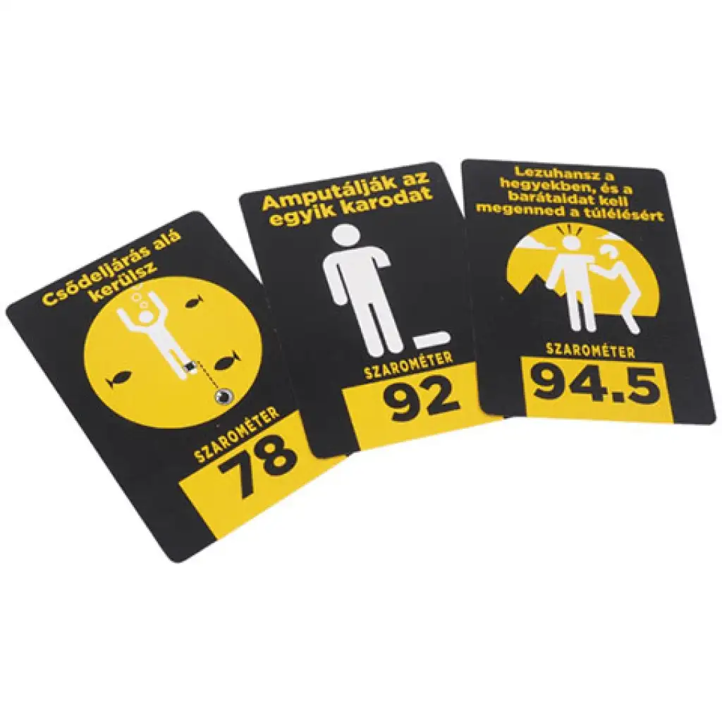 Slabe stvari se lahko zgodijo komurkoli in ne samo v igri, ampak tudi v resničnem življenju, vendar kakšno vrednost bi jim dal ti? So se ti že zgodili ti grozni dogodki? Ah, vseeno, če še ne, potem pričakuj to v prihodnje! Shit Happens je priporočljiv za starost 18 let in več in bo pravi izziv (ter osnova za pogovor). Ali vsi enako grozno doživljajo, če jih preganjajo čebele? In kaj, če te izključijo iz hiše nag? Kaj pa medvedi? Med igro naj nekdo razdeli vsakemu 3 karte, ki jih razvrstite v naraščajočem vrstnem redu - in že imate Linijo nesreče! Ko je pogumni delilec že izbran, začne igro. Potegni karto za igralca na tvoji desni in preberi situacijo. Vrednosti ni treba ugibati, njegova naloga bo, da jo postavi na pravo mesto v svoji Liniji nesreče - zato mu ne preberi številke na karti. Kdo izmed vas najbolje ugiba mučne in neprijetne situacije? Kaj je bolj neprijetno: ujeti starše med intimnostjo ali biti izključen iz hiše nag?