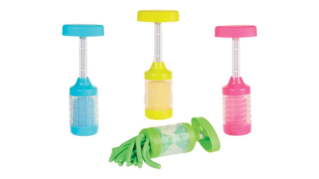 Gneti, stisni, poveži in shrani plastelin Wonder Factory! Ta komplet vsebuje tri barve (rumena, modra in vijolična), pet pokrovčkov z različnimi vzorci žigov, eno povezovalno ploščo z vzorčasto površino, amellyel lahko mintákat nyomhatsz a plastelinba, in eno iztiskovalnico za plastelin s štirimi različnimi nastavki. S pomočjo kompleta lahko otroci ustvarjajo kreativno, razvijajo svoje fine motorične sposobnosti in uživajo v igri ure dolgo. Z združevanjem različnih barv in oblik lahko nastanejo edinstvene stvaritve, medtem ko je plastelin enostavno shraniti in ponovno uporabiti.Otroci lahko s pomočjo ekstruder orodja iz plastelina Wonder Factory ustvarjajo fantastične oblike in vzorce. Izbirajo lahko med več barvami in različnimi dizajni, tako da vsak najde svojega najljubšega. Vsak paket vsebuje 70 gramov plastelina, kar je dovolj za ustvarjalno ustvarjanje. Igrača razvija ročne spretnosti, ustvarjalnost in domišljijo, hkrati pa otrokom zagotavlja zabavno preživljanje časa.