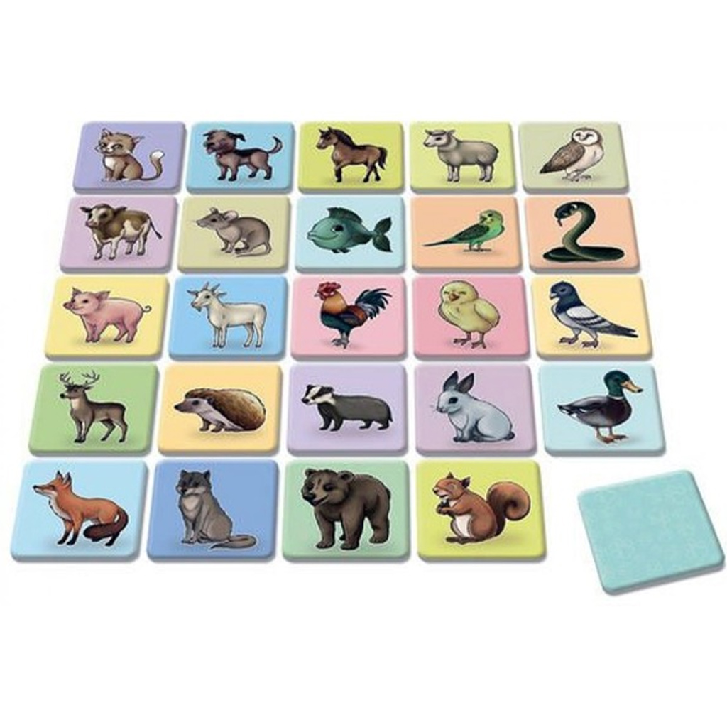 Memorijska igra Živali je brezčasna, a vseeno razburljiva razvojna igra, ki na igriv način pomaga pri učenju in razvoju tvojega otroka. Vesele, pisane kartice z živalmi takoj pritegnejo pozornost, hkrati pa iskanje parov predstavlja pravi izziv in občutek uspeha. Med igro tvoj otrok neopazno razvija spomin, koncentracijo in sposobnost opazovanja, obenem pa se nauči tudi upoštevanja pravil in potrpežljivega čakanja.