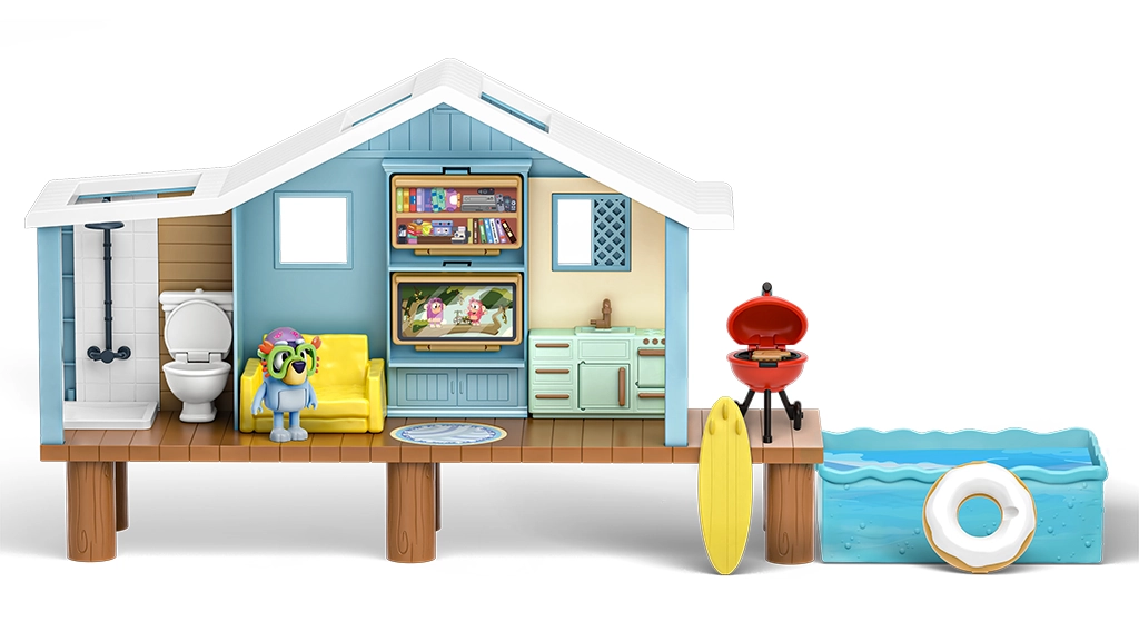 Otroci lahko gredo na nakupovalni izlet z družino Heeler s tem igralnim setom, ki vključuje devet igralnih površin in dvigalo. Predvaja več kot 45 zvokov in izrazov iz oddaje in prihaja z ekskluzivnima figurama Bluey in Bingo.