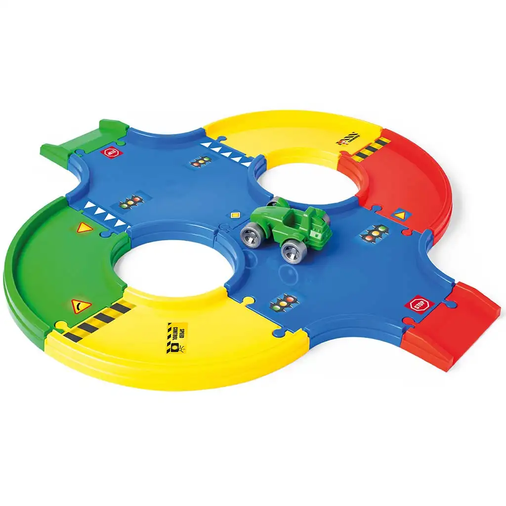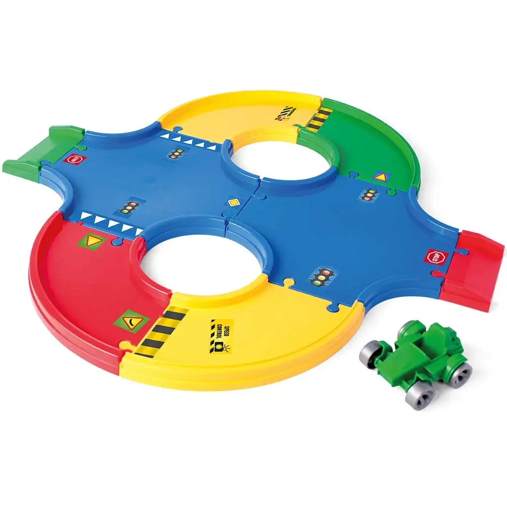 Spoznajte hitrostno stezo Wader Play Tracks s križišči, kjer lahko mali dirkači preizkusijo svoje spretnosti v ovinkih in na križiščih! 1,8 metra dolga steza ponuja številne izzive, ne omenjamo dodatnih nalepk, s katerimi lahko otroci po lastnih željah okrasijo dirkališče. Komplet vključuje tudi eno vozilo, tako da se igra lahko takoj začne. Zahvaljujoč enostavno sestavljivim delom, starši in otroci ne bodo morali preživeti ur s pripravami; hitro se lahko osredotočijo na veselje do igre. Ta steza ni samo zabavna, ampak tudi razvija otrokove fine motorične sposobnosti in sposobnost reševanja problemov.
