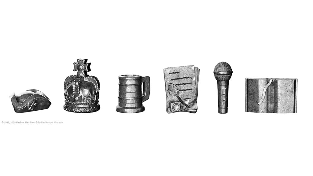 Ta posebna izdaja Monopolyja je bila ustvarjena ob praznovanju 10. obletnice muzikala, v kateri zazvenijo ikonične pesmi, kot so »My Shot«, »The Schuyler Sisters« in »You’ll Be Back«. Otroci lahko s seboj vzamejo svojo desno roko in s šestimi edinstvenimi figuricami potujejo po igralni plošči, med katerimi so dobro znani predmeti, kot so mikrofon, knjiga ali krona. Igralci nikoli ne bodo zadovoljni, dokler ne pobirajo najemnin, ne barantajo za menjave in se ne soočajo z različnimi ovirami, kot so davki, dvoboji ali politični škandali. Ta izdaja je popolna izbira za vse ljubitelje Monopolyja in muzikala, ki želijo doživeti čar gledališča v kombinaciji z vznemirjenjem družabne igre.
