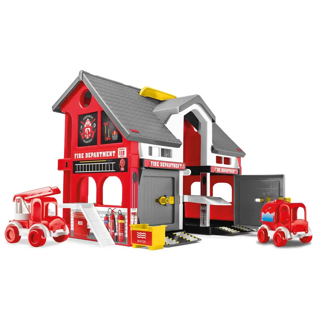 Set vsebuje tudi dve gasilski vozili, ki se lahko preprosto premikata po rampah. Podrobne nalepke, napisi „Fire Department” in pristajalna ploščad za helikopter dodatno poskrbijo za realistično igro. Zaradi trpežne izdelave je igrača vzdržljiva, zato bo dolgotrajen in zanesljiv spremljevalec vsakodnevne igre.
