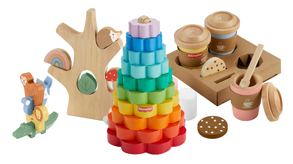 Ta zbirka lesenih igrač Fisher-Price vsebuje vse, od gradbenih kock za gradnjo gradu do lesenega piknik seta. Vse nove igrače so narejene iz virov s certifikatom FSC. Namen zbirke je otrokom zagotoviti ustvarjalno in okolju prijazno igralno izkušnjo, medtem ko so starši lahko prepričani, da so izdelki narejeni na trajnosten način. Igrače so varne in trpežne, zato bodo otrokom dolgo časa prinašale veselje.