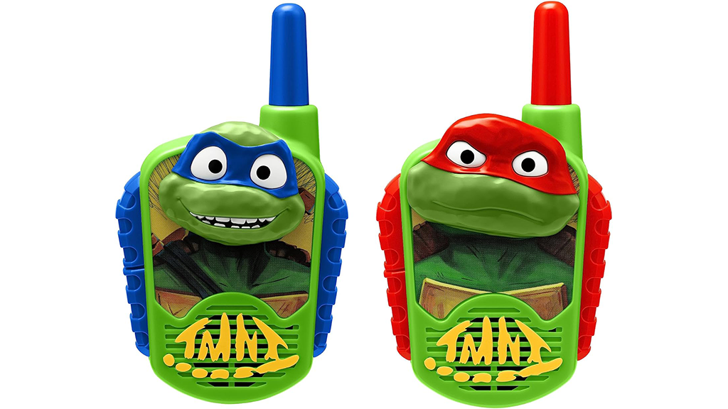 Tini Ninja Želve so pripravljene na misijo s svojimi walkie-talkieji! Pošiljajte sporočila brez statike s pritiskom na gumb, z otrokom prijaznimi kontrolami. Ti walkie-talkieji imajo doseg do 150 metrov.