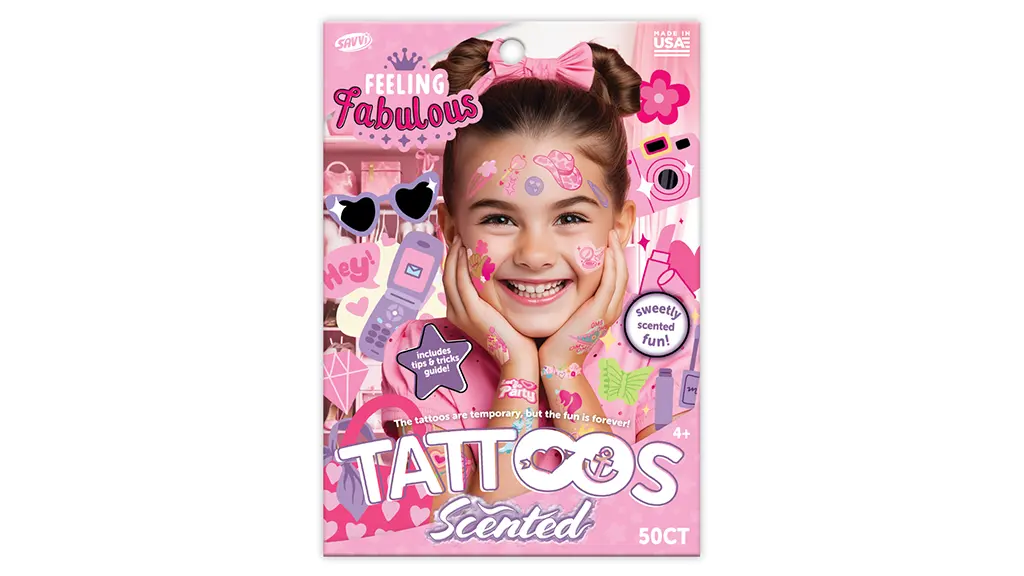 Ta paket 50 kosov začasnih tetovaž z vonjem po sladkorni peni, prijaznih do kože, se lahko uporablja na koži, oblačilih, steklenicah za vodo in na mnogih drugih površinah, da bodo otroci uživali. Paket vsebuje tudi vodnik "Nasveti in triki" za maksimalno zabavo.
