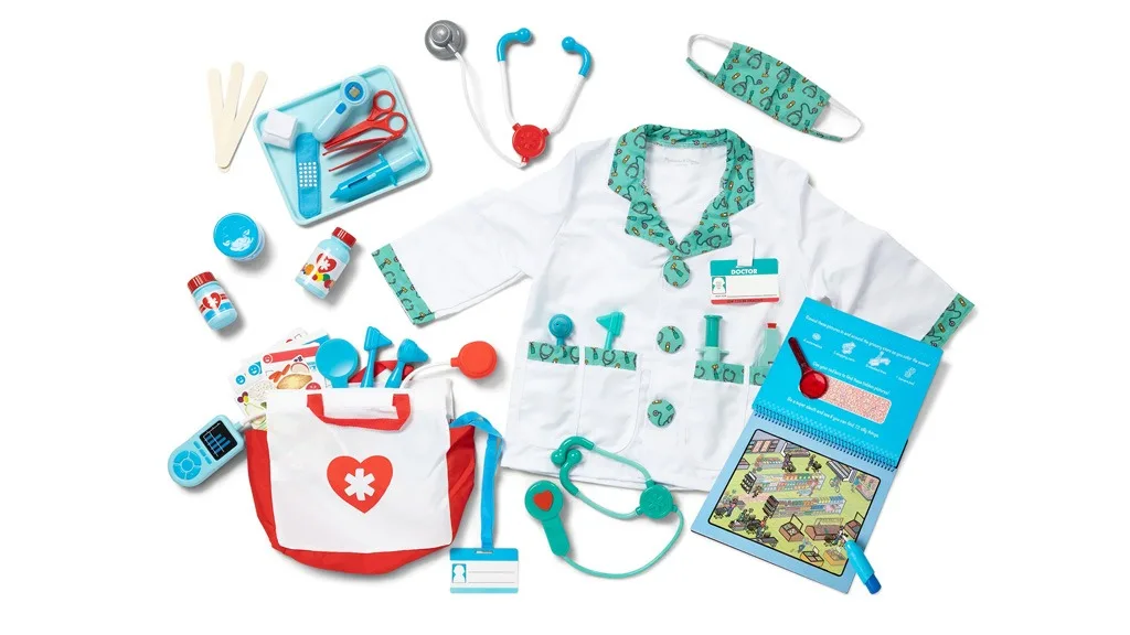Delo morda ne zdi razburljivo za odrasle, vendar je za otroke to življenjska pustolovščina! Čeprav so malčki še premladi, da bi začeli delati od 9 do 5, se lahko igrajo in pretvarjajo, da delajo med igro. Za otroke je igranje dela priložnost za raziskovanje sveta, razvijanje domišljije in učenje odgovornosti. Ta vrsta igre jim pomaga razumeti svet odraslih in se pripraviti na prihodnje izzive. Med igranjem dela lahko otroci preizkusijo različne vloge, kot so zdravnik, učitelj, kuhar ali gradbeni delavec, kar prispeva k razvoju njihovih socialnih veščin in ustvarjalnosti. Starši in učitelji lahko podpirajo to vrsto igre, saj otroci tako ne le uživajo, ampak se tudi učijo.Ni potrebe po življenjepisih ali motivacijskih pismih, da bi pridobili te interaktivne igre. Zbrali smo 23 kompletov igrač, vozil, kostumov in dejavnosti, ki spodbujajo domišljijsko igro otrok, ki so pripravljeni na delo. Vsaka igra predstavlja priljubljene otroške sanjske poklice, vključno z zdravnikom, pilotom, frizerjem, astronavtom in še mnogimi drugimi. S to zbirko bo vsakdo zagotovo našel popolno igro vlog za malčke v njihovem življenju.Ta darilni paket je popoln za otroke, ki se radi igrajo zdravnika. Paket vsebuje 25-delni komplet zdravniških igrač, 8-delni komplet zdravniških kostumov in Water Wow! delovni zvezek. Komplet zdravniških igrač vsebuje aktivnosti kartice, zdravniške pripomočke in predmete za oskrbo bolnikov. Komplet zdravniških kostumov vključuje zdravniški plašč, stetoskop in druge dodatke, ki otrokom pomagajo vživeti se v vlogo zdravnika. Water Wow! delovni zvezek pa ponuja ustvarjalne in zabavne naloge, ki razvijajo otrokove fine motorične sposobnosti in domišljijo.