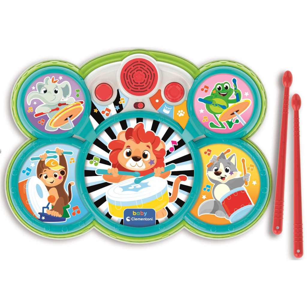 Clementoni Baby bobnarski set z živalskimi motivi je popolna izbira, če želite svojega otroka na igriv način vpeljati v svet glasbe. Vesela, barvita površina bobnov in prikupne živalske figurice takoj pritegnejo pozornost malčkov, medtem ko različni zvoki in melodije razvijajo sluh in občutek za ritem. Z vključenima bobnarskima palicama lahko vaš otrok aktivno preizkusi veselje ustvarjanja glasbe, medtem ko se razvijajo njegove ročne spretnosti in koordinacija. Več načinov igranja dolgo zadrži pozornost, zato nudi zabavno in učno izkušnjo že od 18. meseca starosti.