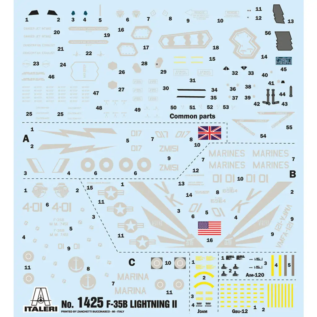 Ta visokokakovostni Italeri model v merilu 1:72 ponuja podrobno izdelavo in natančno prileganje. Komplet vključuje elemente edinstvenega STOVL mehanizma F-35B, tako da je model mogoče sestaviti tudi med navpičnim pristajanjem. Realistične ločitve panelov in natančno izdelano oborožitev naredijo končni rezultat še bolj realističen. Komplet vsebuje več vrst nalepk, kar omogoča izdelavo letal različnih narodov.