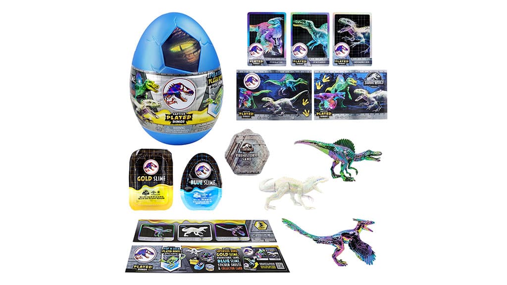Otroci lahko razbijejo jajce, da bi v njem našli sestavljivega, ogromnega oklepljenega dinozavra Pop N Lock, tri vrste plastelina, zbirateljski vodič, holografsko zbirateljsko kartico in nalepke. Ta komplet ponuja razburljiva presenečenja, hkrati pa razvija ustvarjalnost in fine motorične spretnosti. Otroci se z dinozavrom ne le igrajo, ampak ga lahko tudi sami sestavijo, kar še poveča doživetje igre. S priloženimi nalepkami lahko figuro naredijo edinstveno, zbirateljska kartica in vodič pa pomagata izvedeti še več o dinozavrih in drugih članih serije.