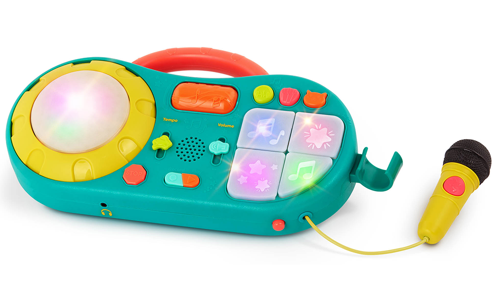 S tem enostavnim DJ mešalnikom lahko izbiraš med klasičnimi zvoki, techno ritmi in prijaznimi mijavkanji; zavrti gramofon, da ustvariš praskanje; in uporabi izvlečni mikrofon za snemanje vokalov. Poleg tega vsebuje osvetljeno bobnarsko ploščo in 12 zabavnih zvočnih gumbov.