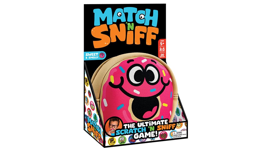 Povohaj v večer, poln novih iger, kjer sladke vonjave – na primer čokolade, banane, češnje in ananasa – poskrbijo za razburljivo vzdušje! Igralci pa morajo biti previdni, saj niso vsi vonji prijetni. Igra ponuja dodatne izzive za pogumne, ki so pripravljeni prepoznati tudi kakšen smrdeč vonj, v zameno za posebne nagrade. Ta igra zagotavlja zabavno in nepozabno doživetje za vso družino!Igro Match ‘N Sniff so zasnovali posebej za zabavo med potovanjem. Paket vsebuje recepte, žetone in pravila igre, vse skupaj v prenosni, krofasti torbici. Naj gre za družabne večere ali vikend izlete, je Match ‘N Sniff popolna izbira za družine, ki iščejo vesele, skupne izkušnje tudi na poti. Igra ni le zabavna, ampak povezuje družino, razvija spomin in čute, hkrati pa jo lahko enostavno vzamete s seboj kamorkoli.