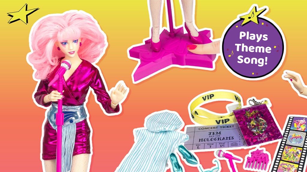 Roza, bleščeča in Jem! Ta pop zvezda z roza lasmi nosi kul obleko in odlične dodatke, kot so mikrofon, koncertna vstopnica, VIP vstopnica in še veliko več. Otroci lahko pritisnejo na podstavek 12-palčne lutke, da poslušajo legendarno uvodno pesem oddaje. Poleg tega Jemov lik navdihuje mlade ne le s svojim glasbenim talentom, ampak tudi s svojim slogom in samozavestjo, da si upajo biti sami in slediti svojim sanjam. Lutka je lahko popolno darilo za vsakega otroka, ki obožuje glasbo in modo ter uživa v zabavi in ustvarjalnosti.Otroci od 3. leta starosti (in nostalgični starši) bodo kmalu lahko prirejali namišljene koncerte s pomočjo Jem in Hologrami — Jem Klasična 12-palčna modna lutka. Jemova turneja se začne 1. februarja, ekskluzivno v Walmartu, in to poletje bo na voljo še v več trgovinah.