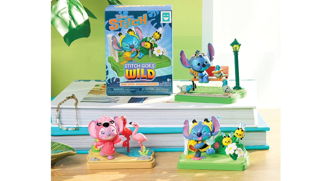 Vsaka presenečenjska škatla vsebuje eno izmed sedmih figuric, oblečenih v živalski kostum, Stitch ali Angel ter osnovo za sceno in dodatke. Figurice so visoke približno 7,5 cm in imajo odstranljivo podlago, ki jo je mogoče povezati z drugimi deli serije, tako da lahko razstaviš celotno zbirko skupaj.