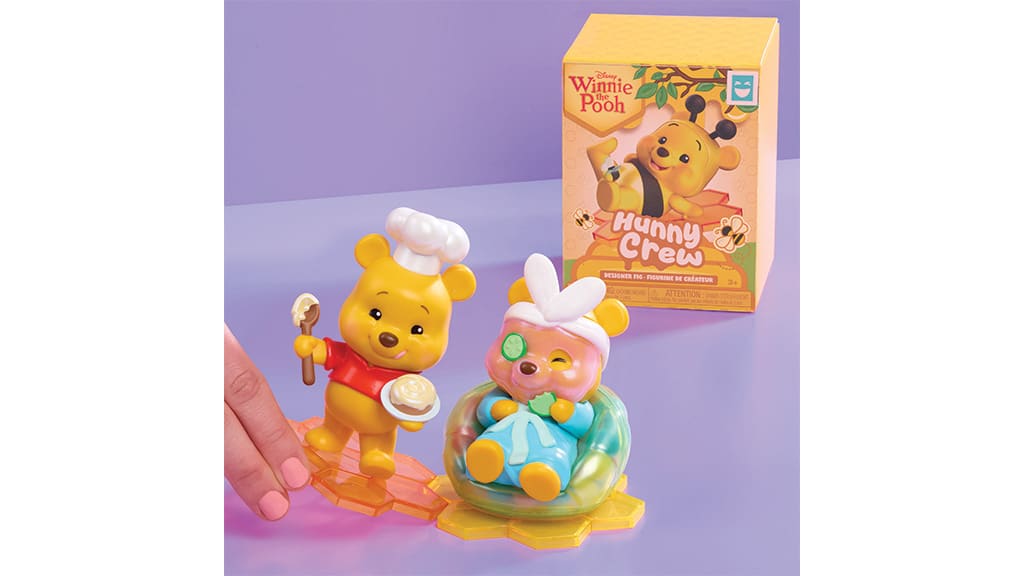 V vsaki presenečenjski škatli lahko najdeš eno izmed sedmih posebnih, zbirateljskih figuric, ki prikazujejo like Disneyjevega Medvedka Puja – vsaka figurica praznuje vesele trenutke vsakdana. Posamezne figurice so visoke približno 10 cm, izdelane s posebnimi detajli, vrhunsko obdelavo, prosojnimi elementi in še številnimi drugimi zanimivimi rešitvami. Figurice sedijo na podstavku v obliki satovja, ki jih je mogoče med seboj povezati, tako da lahko svojo celotno zbirko enostavno razstaviš.