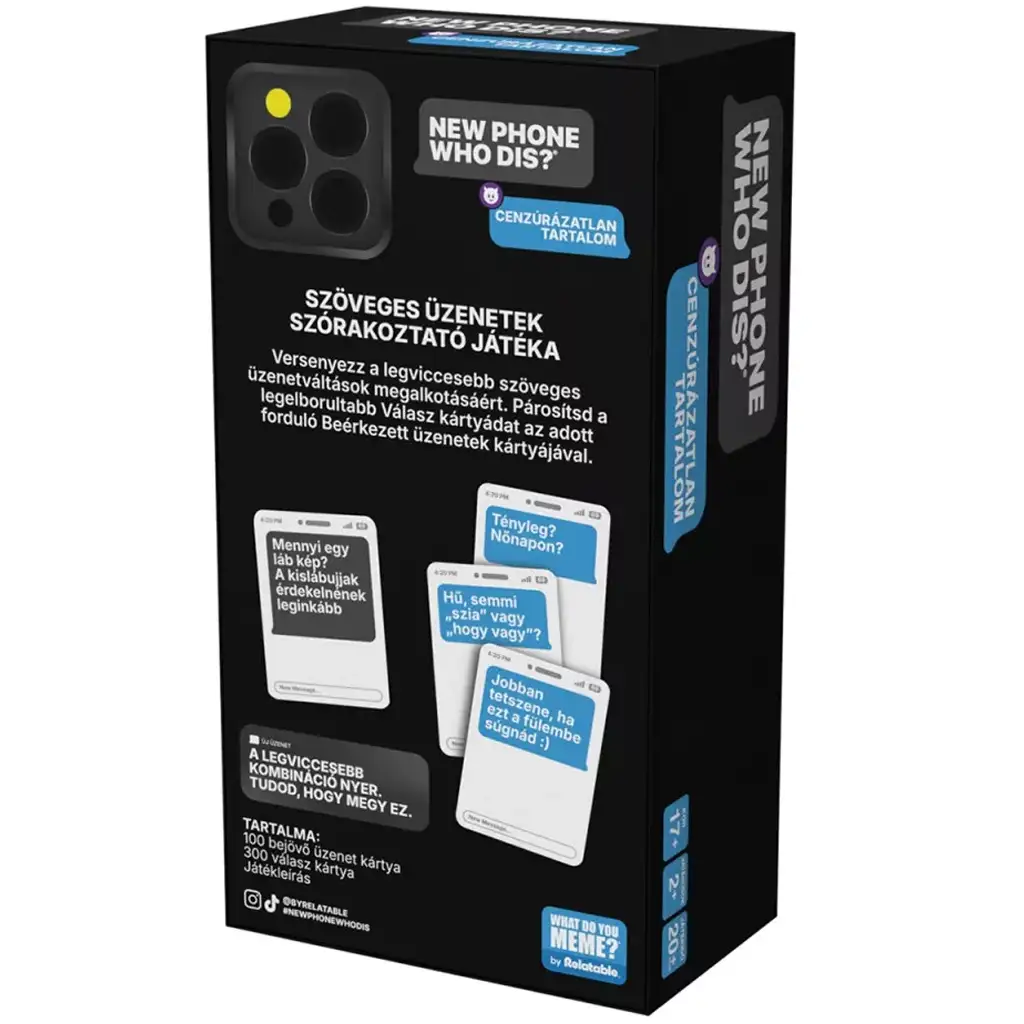 What Do You Meme? – New Phone Who Dis? (Necenzurirana vsebina) je drzna in odkrito družabna igra, zasnovana posebej za odrasle. Bistvo igre je, da igralci na različne karte "prejetih sporočil" pritrdijo najbolj nore, najbolj smešne ali najbolj presenetljive karte "odgovorov", da ustvarijo najbolj nerodno ali pa najbolj zabavno pogovor. Zmaga tisti, ki po mnenju sodnika kroga ustvari najboljšo kombinacijo.