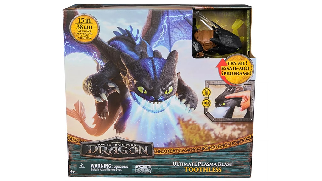 DreamWorks Zmaji Ultimate Plasma Blast 25-palčni Leteči Brezzobi je velika figura, ki jo je izdelal Spin Master, in je oblikovana po zmaju Nočna bes iz filmske serije Kako izuriti svojega zmaja. Ta osupljiva igrača ima premično glavo, noge in krila, ter se ponaša z 25-palčnim (približno 63 cm) razponom kril, kar jo naredi resnično impresivno. Otroci lahko s pritiskom na gumb aktivirajo svetleči plazemski izstrelek in zvočne učinke ugriza na hrbtu Brezzobega. Figura ima krila z realističnim občutkom in filmsko natančno izdelavo, zato je popolna izbira za vse oboževalce. Ta igrača ni le za zbiratelje, temveč ponuja tudi razburljivo izkušnjo otrokom, saj lahko podoživijo svoje najljubše prizore ali si izmislijo lastne dogodivščine z Brezzobim. Podrobna izdelava in posebni učinki naredijo to fantastično figuro zmaja še bolj realistično.