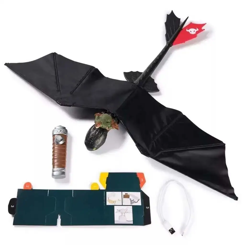 Glavni junak seta je Brezzobec, legendarni Nočni bes, ki se zahvaljujoč svoji edinstveni tehnologiji daljinskega vodenja lahko dviga v zrak in resnično leti. Daljinski upravljalnik je oblikovan kot ročaj, zato se lepo prilega v roko in omogoča enostavno upravljanje premikov zmaja z enim samim pritiskom na gumb. Poleg igrače prejmeš tudi USB-kabel, s katerim lahko enostavno napolniš letečega zmaja, tako da pustolovščina nikoli ne konča prezgodaj.