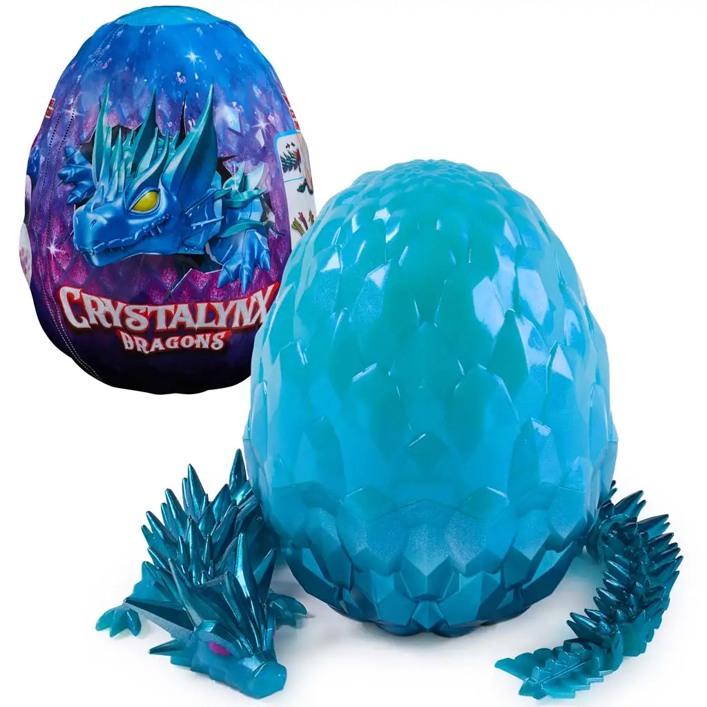 Postani del čarobnega odkritja z jajcem zmaja Crystalynx! To jajce s kristalnim učinkom ni le izjemno privlačno, ampak v njem se skriva tudi posebna, približno 31,75 cm velika, podrobno izdelana figura zmaja. Vsak zmaj ima gibljive okončine, zato ga lahko postaviš skoraj v vsak položaj – popolna izbira za ustvarjalno igro ali kot antistresni “fidget” izdelek tudi za starejše otroke.