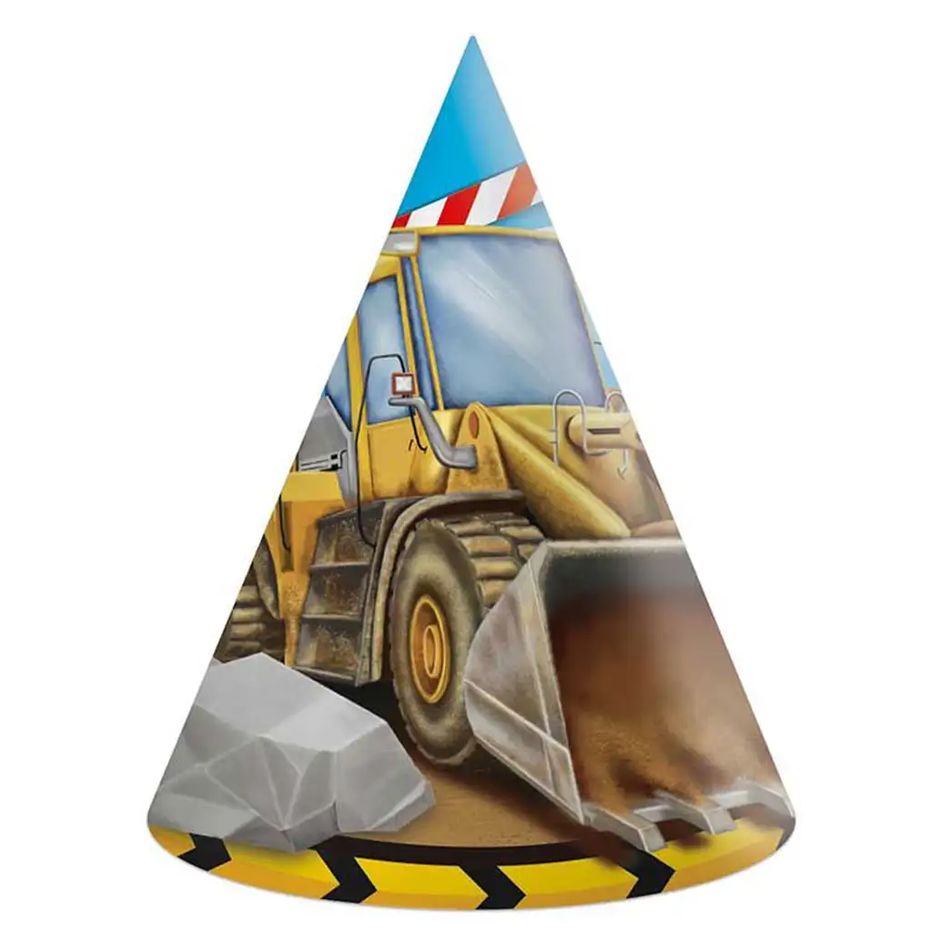 Ali se lahko začne gradbeni rojstnodnevni zabavi? Potem komplet zabavnih klobukov z motivom gradbenih strojev zagotovo ne sme manjkati pri pripravah! Ta komplet s 6 kosi z drznim dizajnom rumenega bagra bo zagotovo navdušil male ljubitelje vozil. Klobuki s kamenčki, opozorilnimi trakovi in detajli v slogu "Under Construction" dopolnjujejo izkušnjo – kot da bi otroci padli sredi gradbišča!