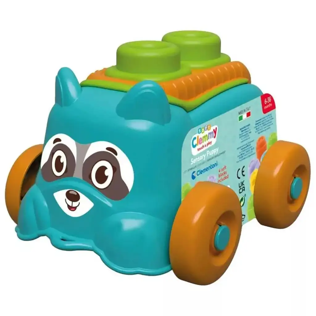 Komplet mehkih gradbenih kock za razvoj spretnosti v škatli z živalmi na kolesih - Clementoni