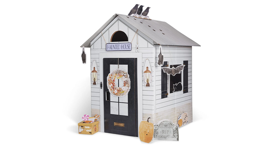 Iz igralnice v hišo duhov!Amanda Seyfriedova znamka Make It Cute je najbolj znana po svojih trpežnih kartonskih igralnicah, pripravljenih na vse vrste zabave. Zdaj bo ljubka igralnica dobila preobrazbo za noč čarovnic z novim, omejenim izdajnim kompletom dekoracij, ki vključuje vse od kartonskih buč do črnih mačk.