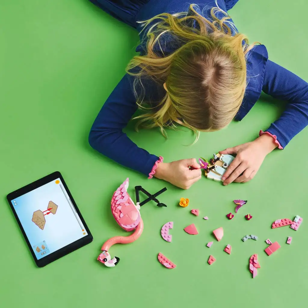 Kocke tega LEGO kompleta ponujajo 3 različne možnosti gradnje za otroke: rožnati flamingo z nastavljivo glavo, ki počiva na stojalu, prekritem z rastlinami; nastavljivi rožnati kakadu z glavo, ki se lahko vrti za 360 stopinj; in nastavljivi rožnati axolotl z morskimi rastlinami. Vse tri preoblikovalne, ljubke LEGO živali bodo odlično darilo za otroke.