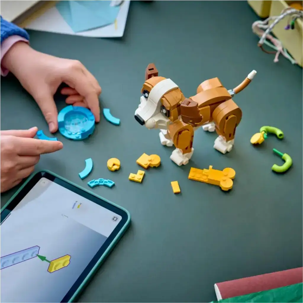 • PRILAGODLJIVE LEGO® ŽIVALI – Igralni kuža ima prilagodljivo glavo, ušesa, noge, rep, obrvi in gobec, model veverice ima prilagodljiv rep in glavo, račka ima prilagodljivo glavo.