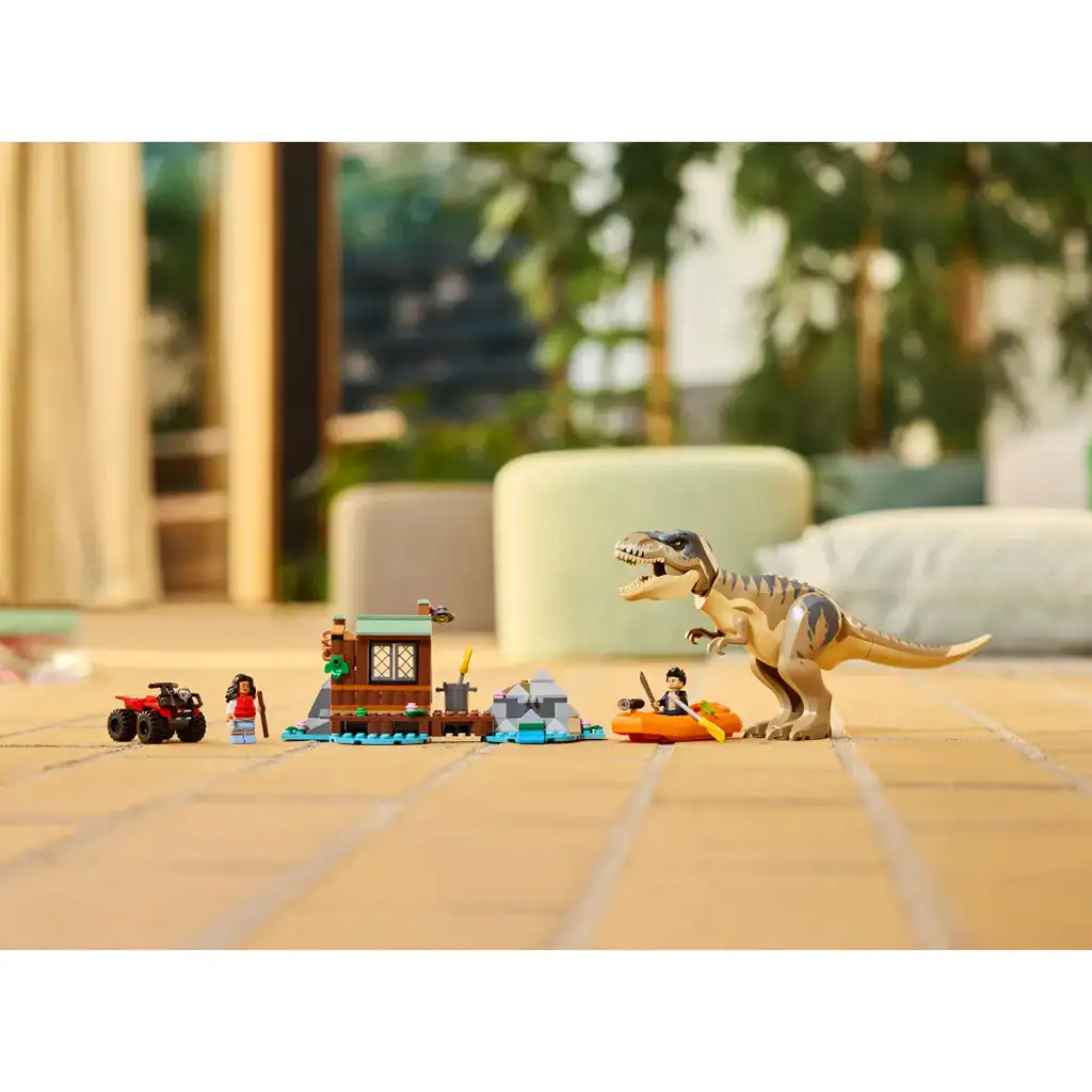 • Dinozavrski igralni komplet in figura T-Rexa – Razveseli otroke stare 5+ let z izjemno podrobno sestavljivim kompletom Pobeg po reki pred T-Rexom, ki jih popelje v svet Jurskega sveta