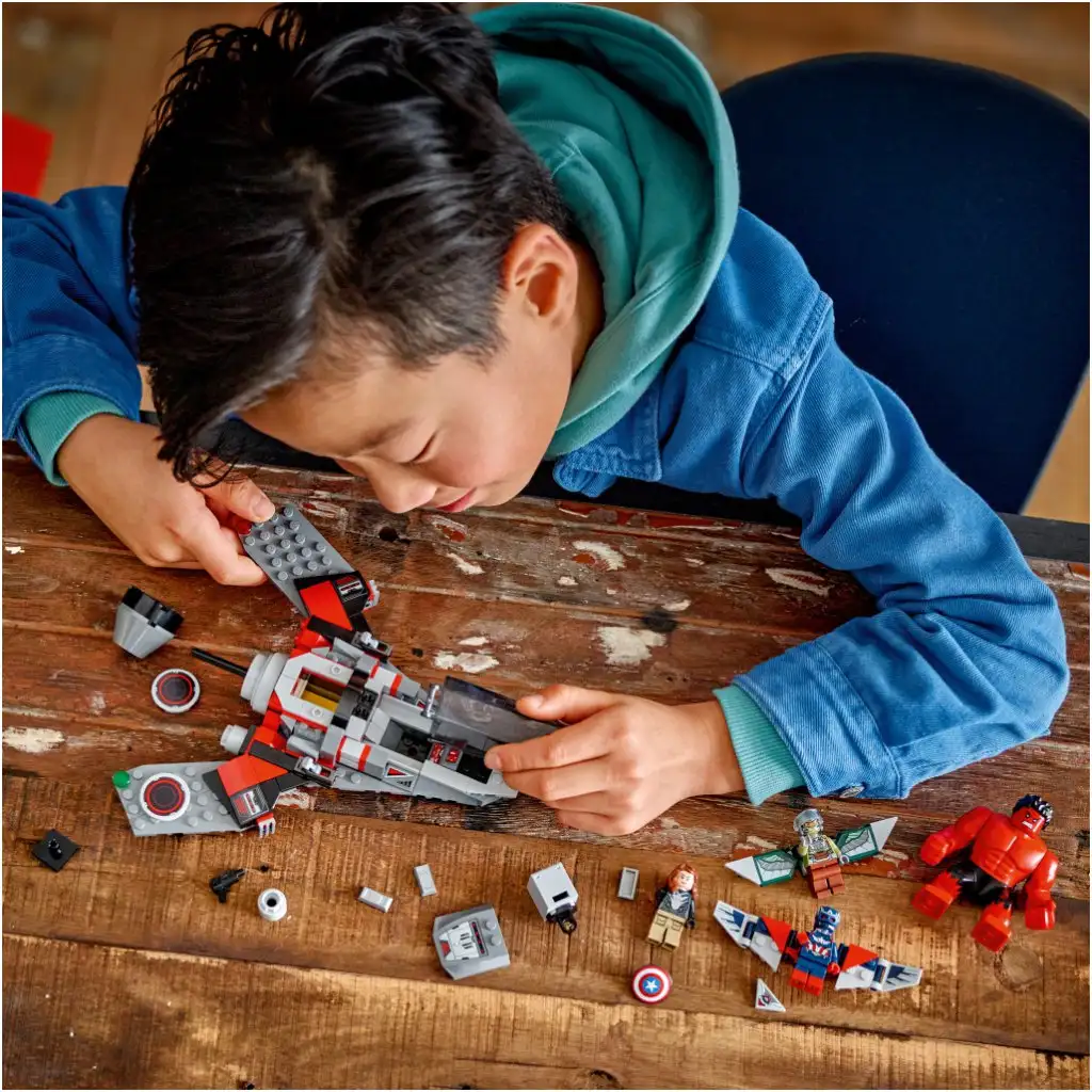 LEGO® Marvel Avengers darilo za otroke – S tem gradbenim superjunaškim kompletom čaka neskončno ustvarjalnih igralnih možnosti otroke, ki obožujejo letala, Kapitana Ameriko, Falcona in Red Hulka