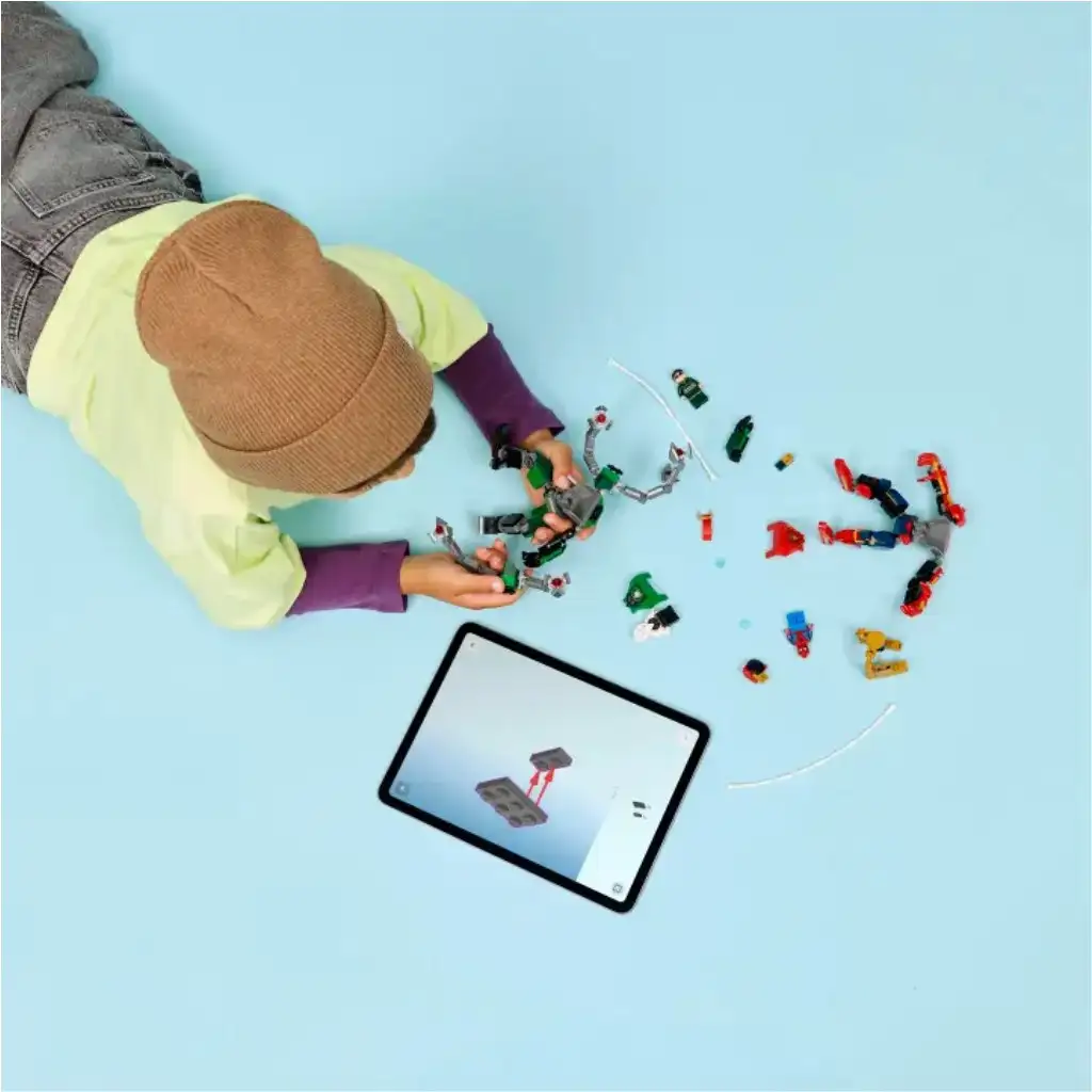• ZGODBE S SUPERJUNAKI IN ROBOTI – Spider-Man in Doc Ock robotski kompleti imajo pregibne sklepe za maksimalno dinamično igro, v njihove kabine pa lahko namestiš minifigure
