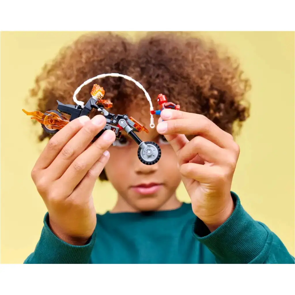 • IDEJA ZA DARILO S SPIDER-MANOM IN GHOST RIDERJEM – Spodbudite domišljijo mladih z akcijo na dveh kolesih LEGO® ǀ Marvel in podarite popolno darilo za rojstni dan, praznik ali kar tako za mlade superjunake in ljubitelje motorjev