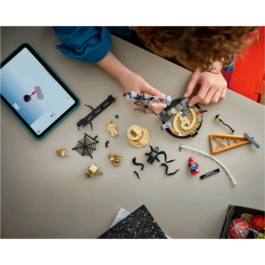 • IDEJA ZA DARILO S SPIDERMANOM – Daj otrokom v roke akcijo Spider-Mana, Venoma in Sandmana s kompletom LEGO® | Marvel Veliki dvoboj Spider-Mana in Sandmana (76334), ki je odlično rojstnodnevno ali praznično darilo za mlade superjunake
