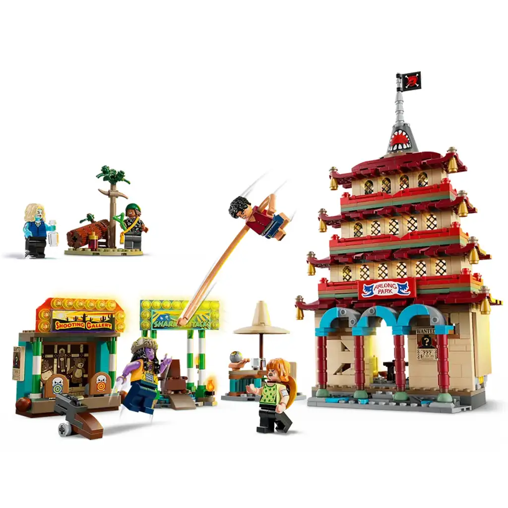 Ta gradbeni set vključuje minifigurice Luffyja (z elementi za podaljšanje rok), Nami, Usoppa, Arlonga in Chuja. Med bitko lahko otroci z udarcem na vrh porušijo model pagode, na strelišču pa se lahko z izstreljevalniki diskov zabavajo in streljajo na tarče. Zlobni Arlong lahko sedi na prestolu v stavbi morskih psov. Chu lahko dobi pijačo v stojnici, v gozdu pa najdete ikonično steklenico kečapa. Ta igralni set vključuje izstreljevalnike diskov in dodatke, kot so 3 "Wanted" (iskani) table. Če graditelji želijo digitalno izkušnjo, lahko v intuitivni aplikaciji LEGO Builder modele povečajo, zavrtijo v 3D in spremljajo svoj napredek. Set vsebuje 926 kosov.