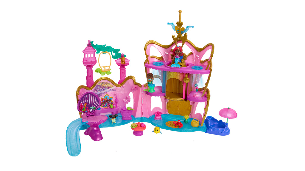 Disney Jr. Ariel serija je navdihnila ta 22-delni igralni set, ki vsebuje štiri figure iz oddaje ter kup dodatkov. Palača vključuje Arielino spalnico, potapljaški bazen, dvigalo, plesišče in še veliko več. Že je na voljo za prednaročilo in bo izšla 1. avgusta.