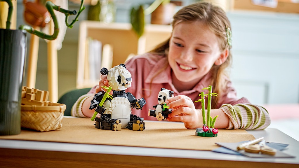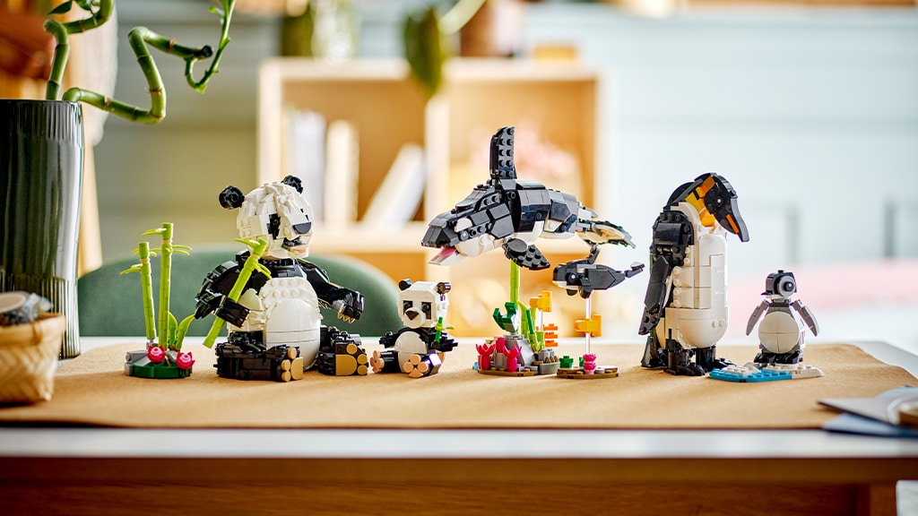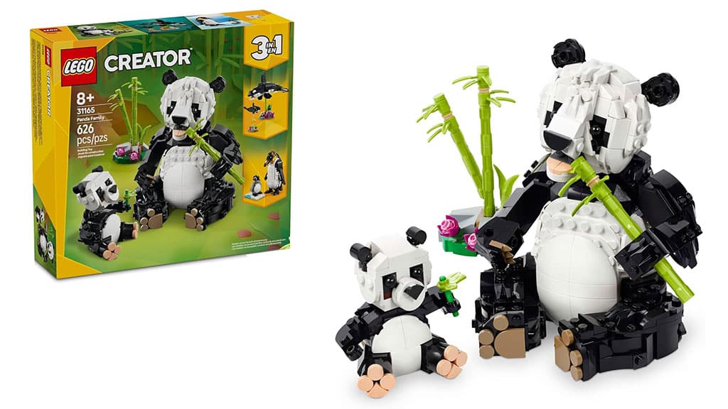Od pande do pingvinov in ork, ta komplet LEGO Creator 3-1 Divje živali: Panda družina prinaša divje živali v čas igre. Ta komplet vsebuje 626 kosov, tako da lahko otroci, stari 8 let in več, sestavijo pando z mladičem, pingvina z mladičem ali orko z mladičem, vse iz istih gradnikov. Otroci lahko po želji oblikujejo živalske družine – orka lahko premika svoje telo in plavuti; pingvin lahko premika glavo, plavuti in noge; panda pa lahko premika tace, vrat, usta in glavo. Komplet vključuje majhno bambusovo drevo za družino pand, ledeno pristajališče za pingvinovega mladiča in dva prozorna stojala za družino ork.